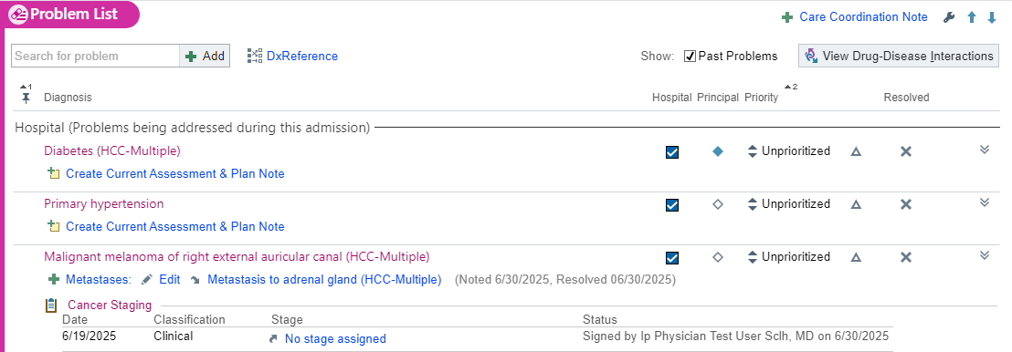 Practitioners use the Problem List in Epic to monitor the progress and treatment of patients’ long-term conditions from onset to the present day. This list serves as a comprehensive register of current and active conditions, as well as past or chronic conditions relevant to the ongoing care of a patient. It is divided into two sections:
