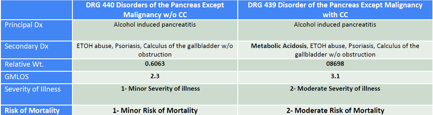 Case example: Three-day LOS medical case; impact w/o and with metabolic acidosis