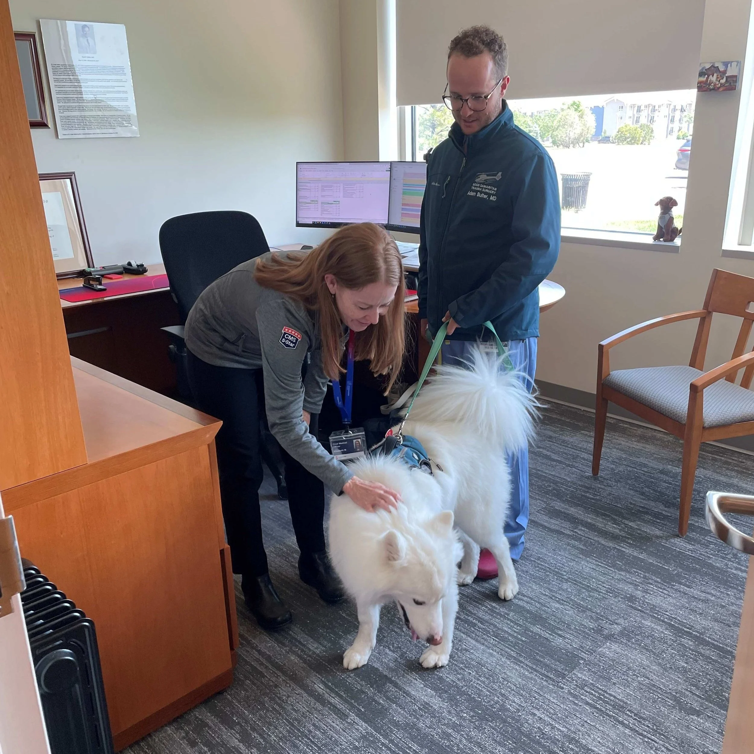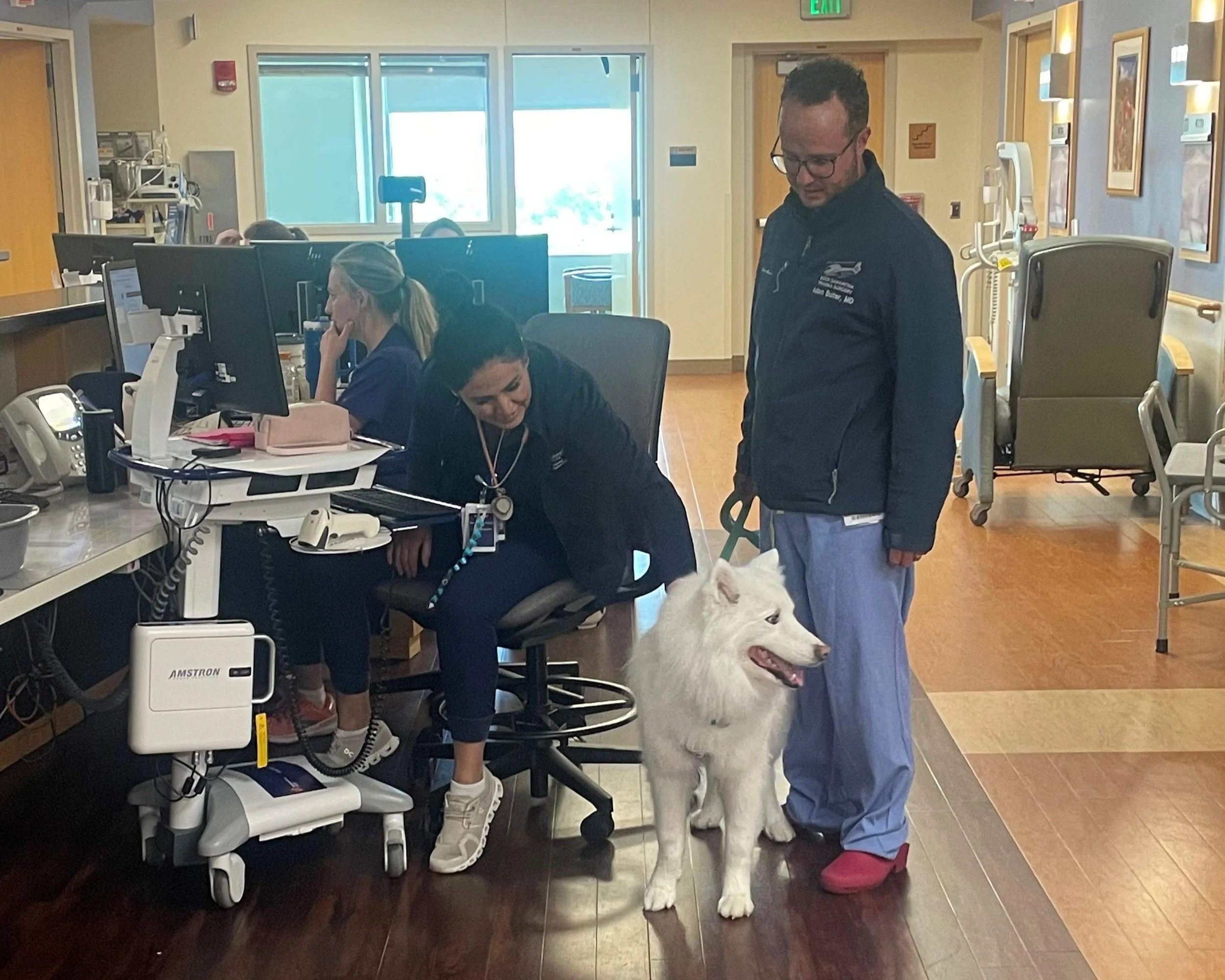 When he’s not scrubbing into the OR, you might find Bulter walking the halls with his fluffy sidekick. Asher is a 4-year-old Samoyed and a proud member of Good Samaritan’s Caring Canine Program. Together, Bulter and Asher offer a unique kind of therapy that touches hearts and lifts spirits with surgical precision.